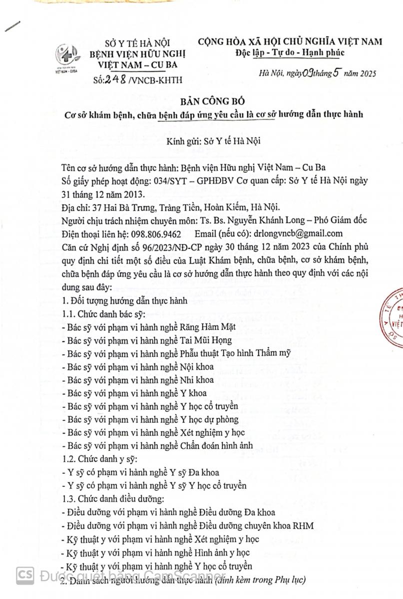 BẢN CÔNG BỐ CƠ SỞ KHÁM BỆNH, CHỮA BỆNH ĐÁP ỨNG YÊU CẦU LÀ CƠ SỞ HƯỚNG DẪN THỰC HÀNH (CẬP NHẬT LẦN 01)