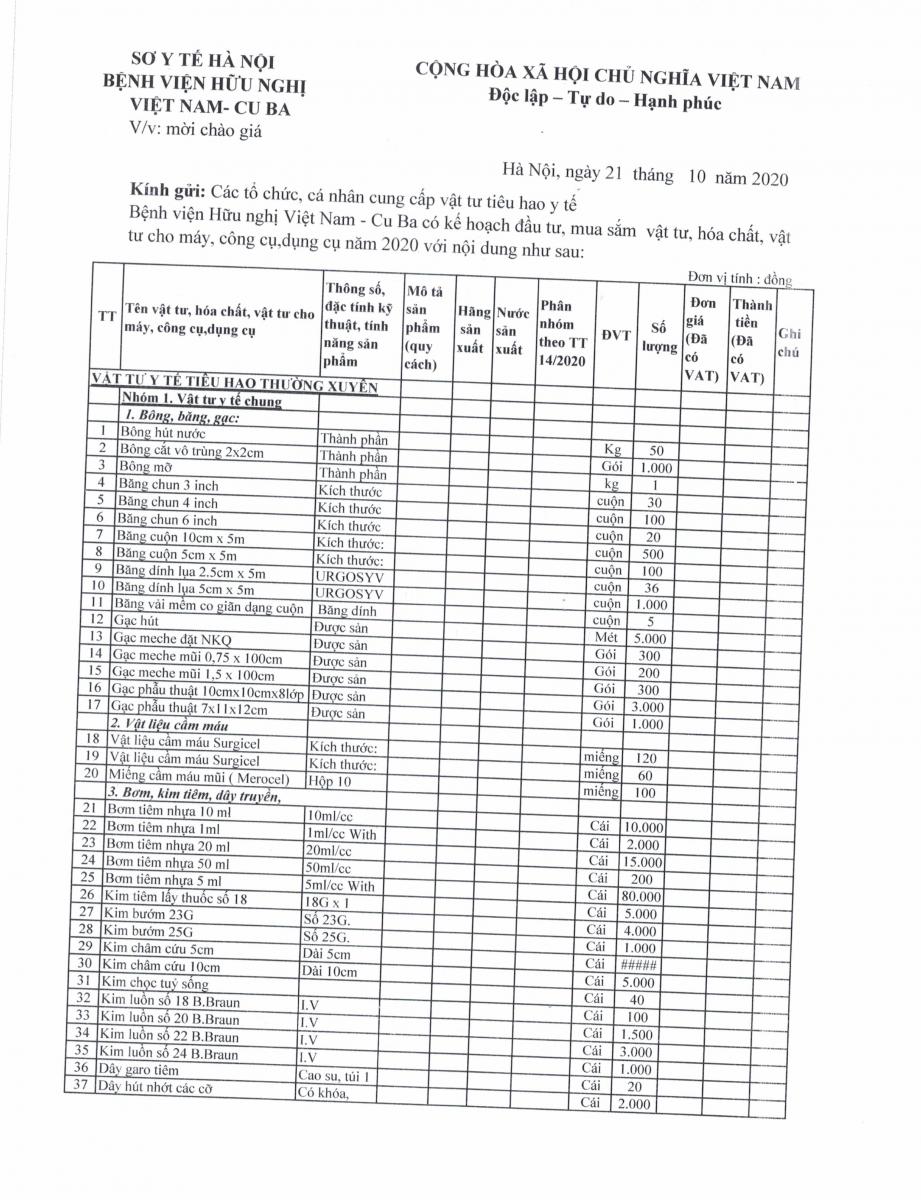 Mời chào giá thuốc cung ứng tại bệnh viện