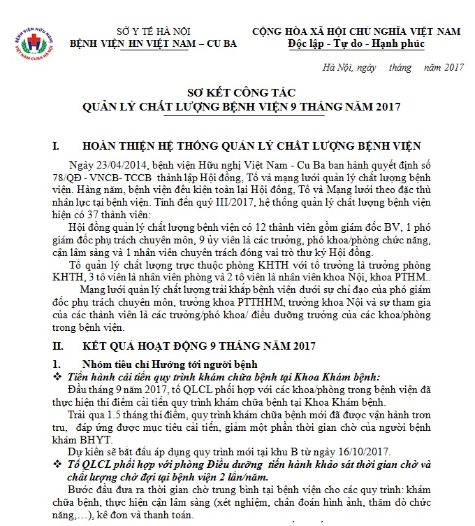 BÁO CÁO TỰ KIỂM TRA ĐÁNH GIÁ CHẤT LƯỢNG BỆNH VIỆN 9 THÁNG NĂM 2018